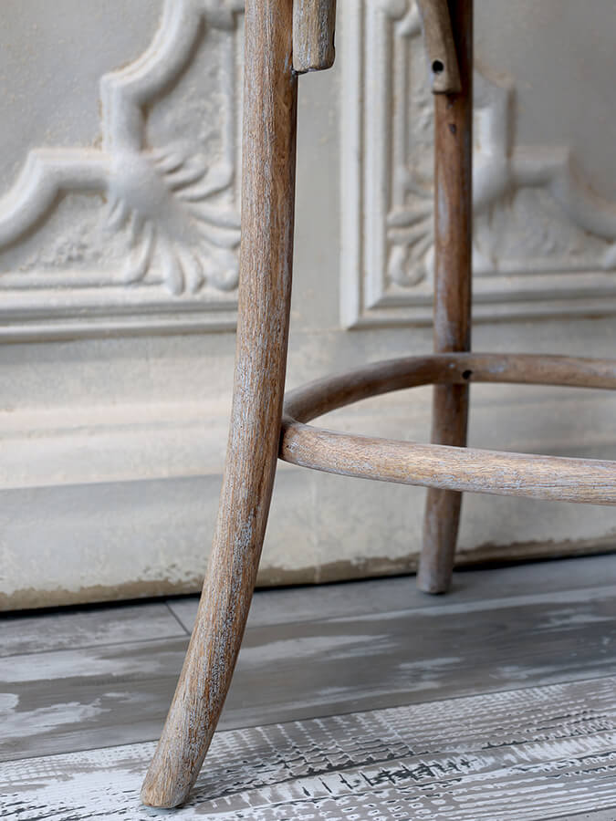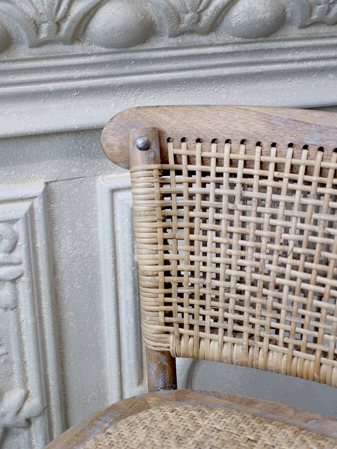Barová židle s proutěným sedákem a opěradlem, vyrobená z kaučukového dřeva. Poskytuje pohodlné sezení a vnese do vašeho domova organický prvek.