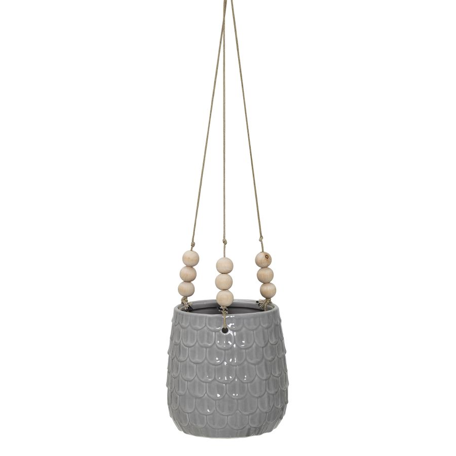 Tento šedý keramický květináč, který můžete zavěsit na terasu nebo kamkoli do bytu, je krásným domovem pro vaši oblíbenou rostlinu.