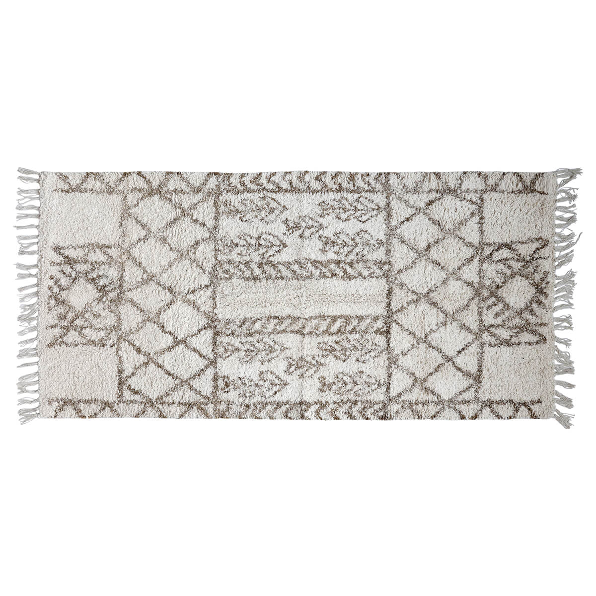 Koberec s pozoruhodným marockým vzorem ručně vyrobený z bavlny v přírodní barvě.