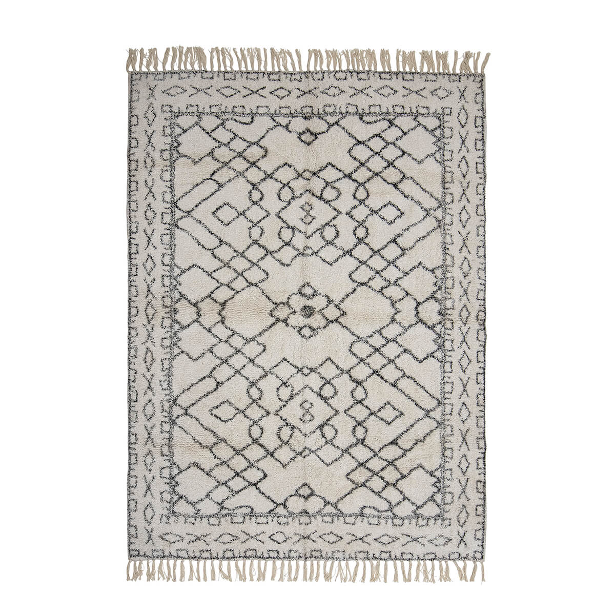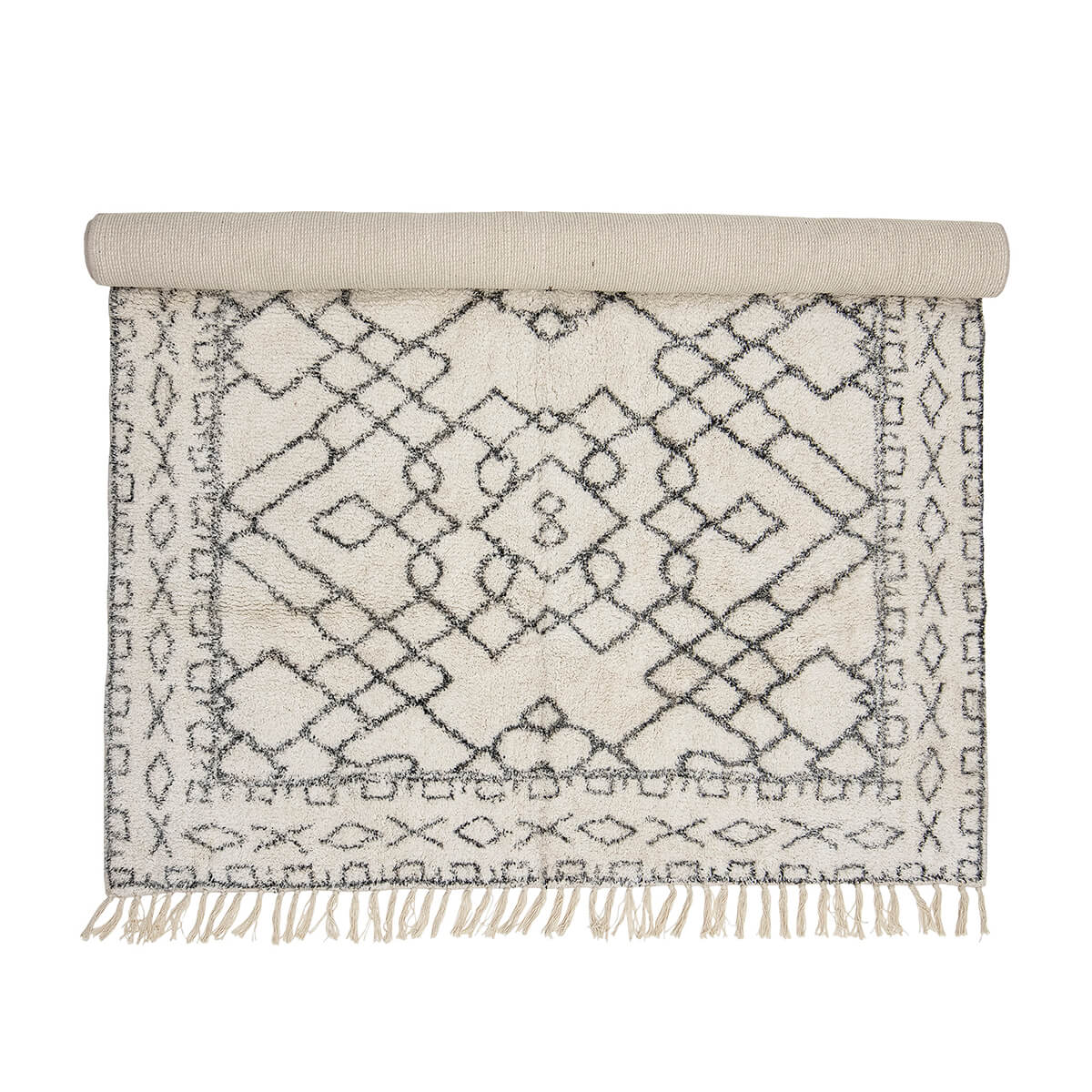 Koberec Bloomingville z bavlny v bílé barvě s černým vzorem. Nádherný koberec vnese do domova teplo díky svému nadčasovému designu.