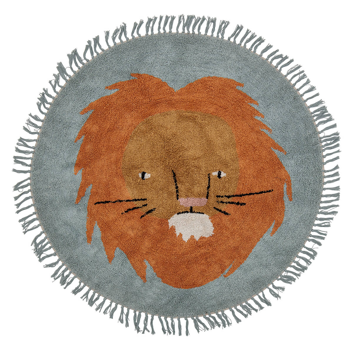 Kulatý koberec by Bloomingville MINI je bavlněný koberec se zaoblenými tvary a roztomilou hlavou lva. Koberec je všívaný a útulný s malými třásněmi po obvodu. Díky bavlněnému materiálu je koberec odolný - ideální do dětského pokoje.