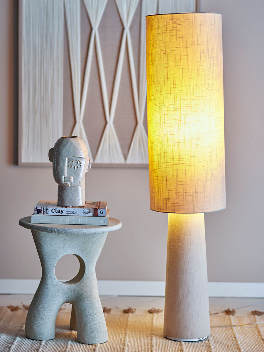 Stojací lampa v barvě lnu od společnosti Bloomingville, která je ideální volbou pro vytvoření útulné světelné atmosféry ve vašem domově. Lampa s žárovkou v podstavci i stínidle poskytuje v místnosti kompletní a příjemné osvětlení.