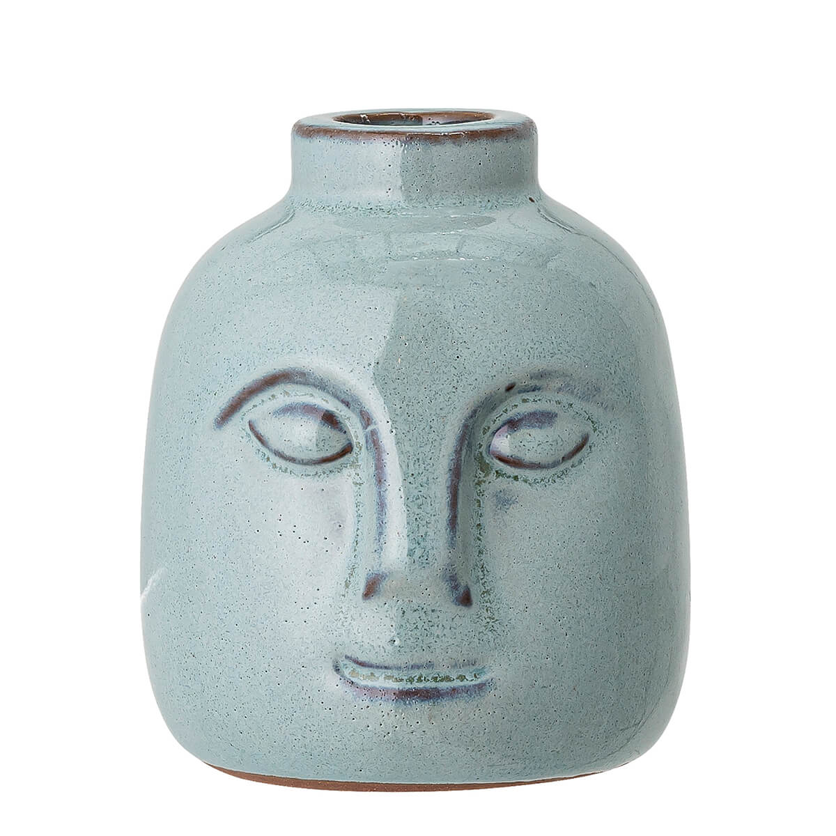 Svícen se vzorem obličeje, ručně vyrobený z kameniny.