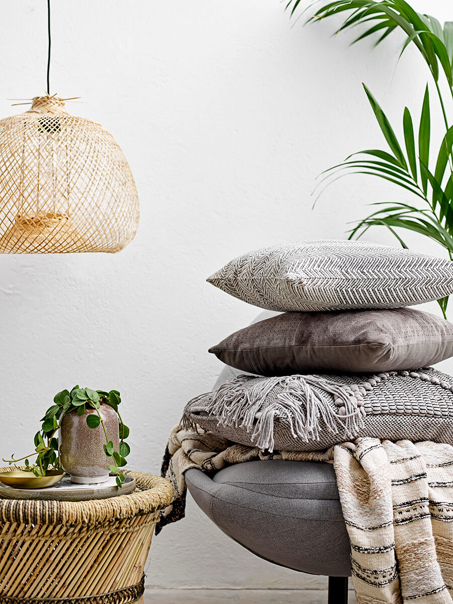 Závěsná lampa z bambusu v přírodní barvě. Dodává domovu teplo a díky svému lehkému designu poskytuje vynikající světlo.