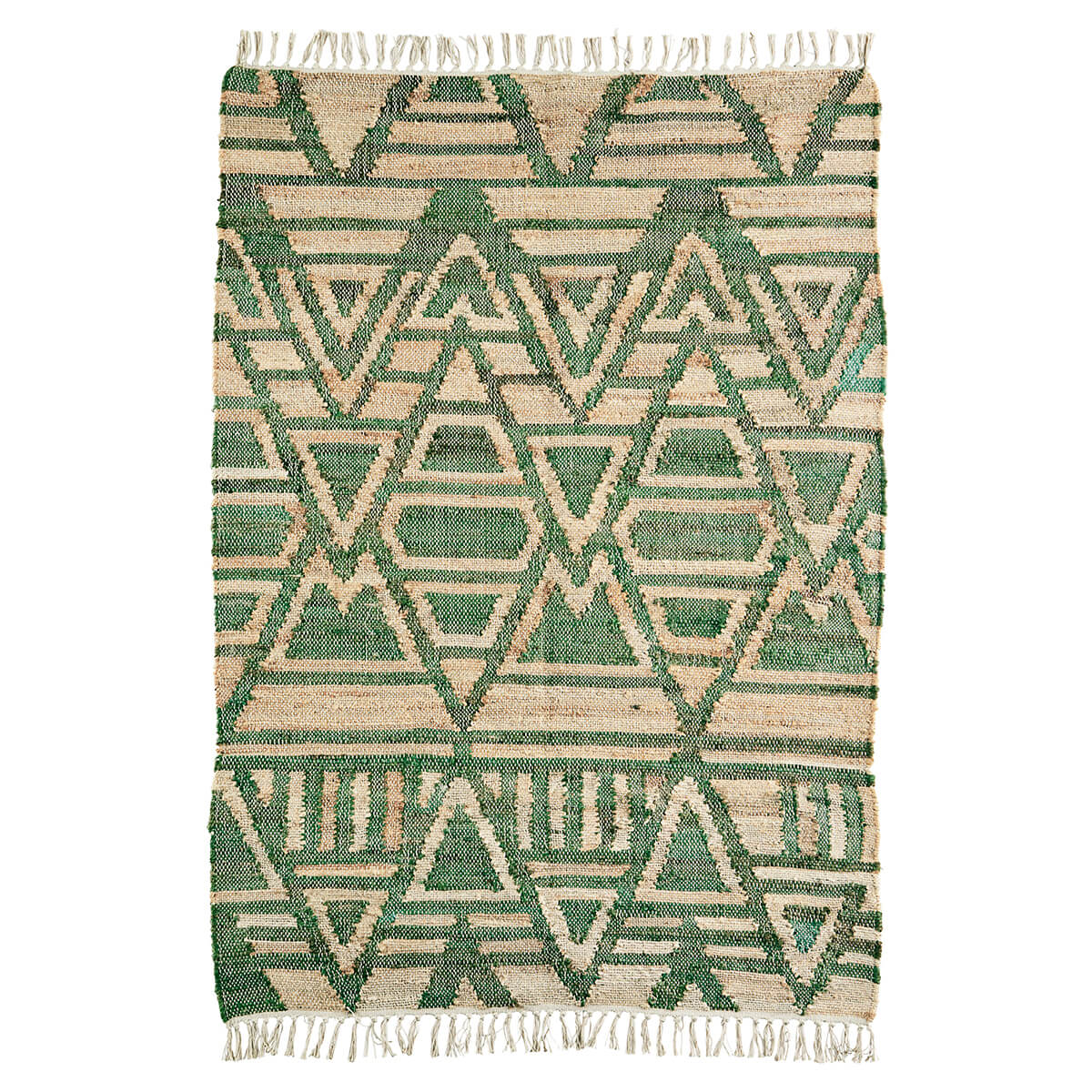 Der grüne Juteteppich, 120 x 180 cm, kombiniert harmonisch natürliche Jute mit modernen grünen geometrischen Mustern und strahlt Wärme und Stil in jedem Raum aus.