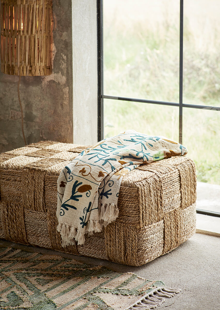 - Hergestellt aus handgewebtem, natürlichem Jutematerial, das Langlebigkeit und Naturverbundenheit garantiert.
