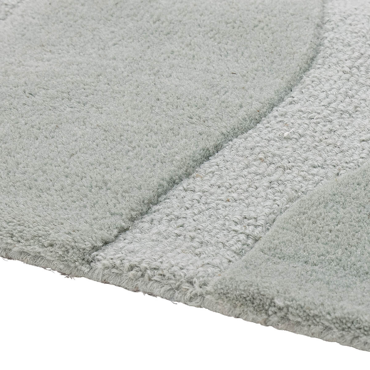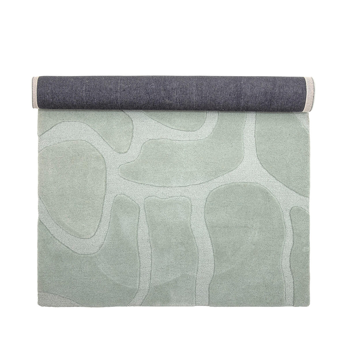 Grüner Teppich aus Wolle mit weichem organischem Muster.