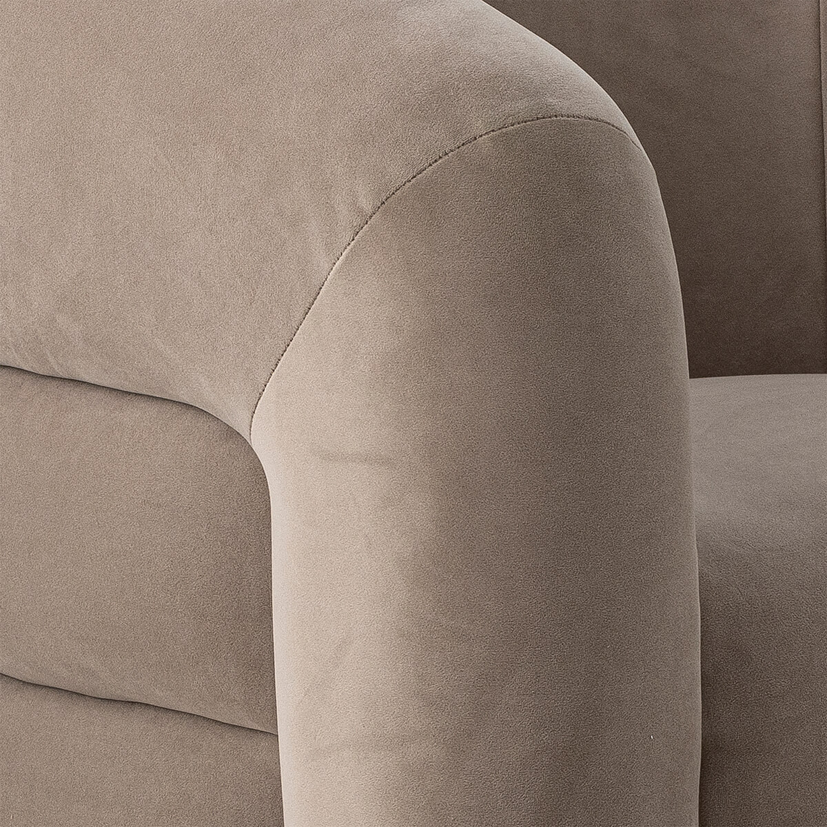 Der graue Sessel Joel mit seiner eleganten, weichen, grauen Samtpolsterung und der abgerundeten Rückenlehne bietet perfekten Komfort und einen stilvollen Look in jedem Zuhause.