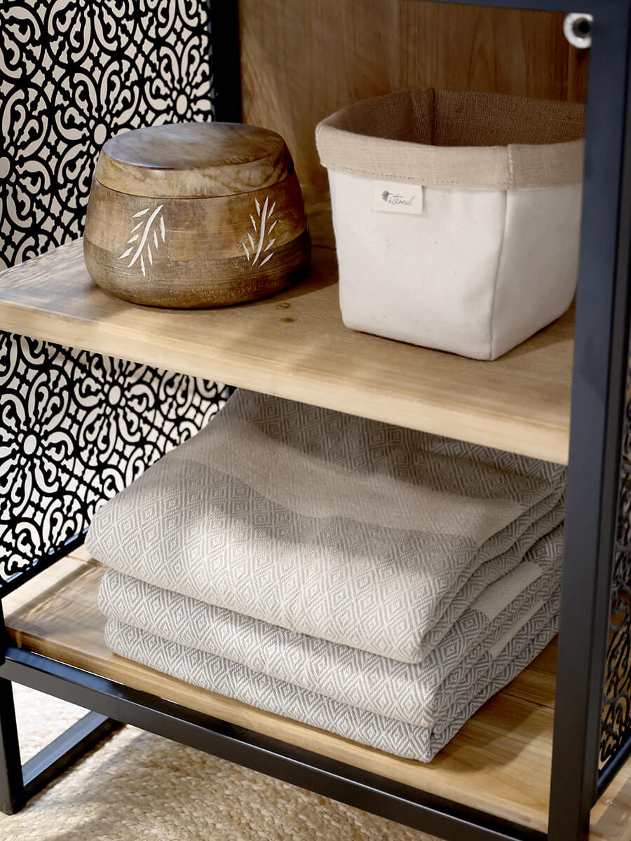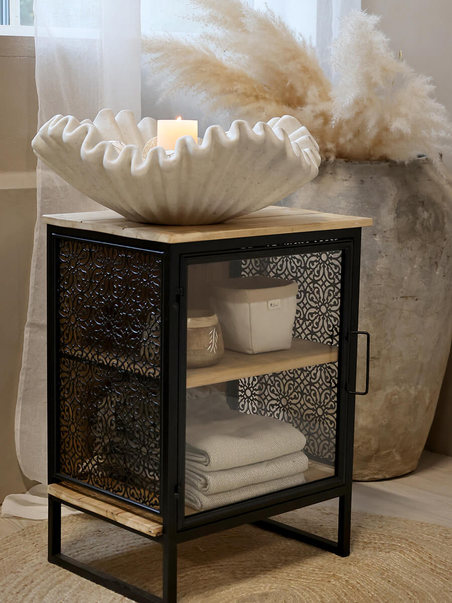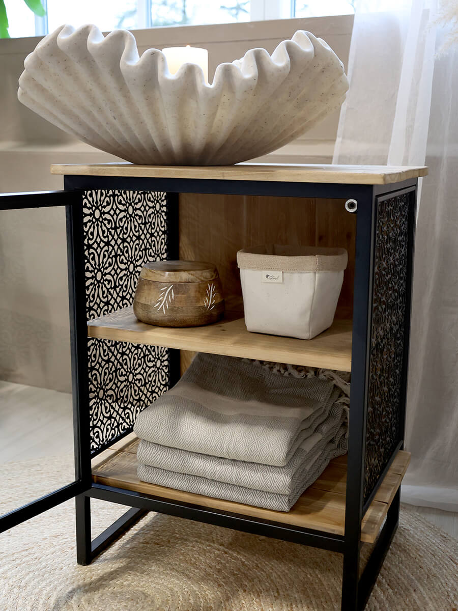 Aufbewahrungseinheit mit 2 Regalen mit schwarzem Metallrahmen von Chic Antiqe. Praktische und dekorative Kleinmöbel.