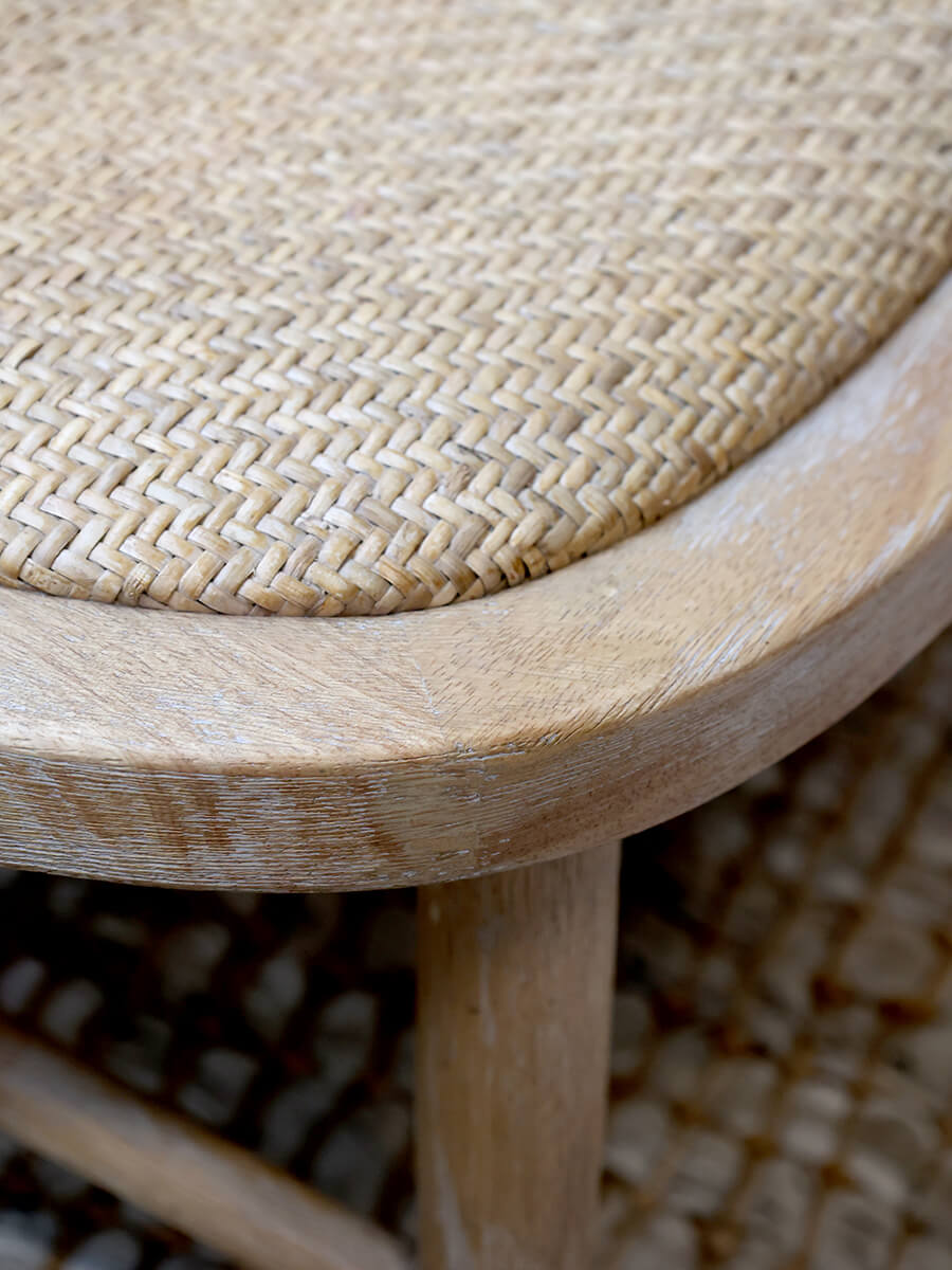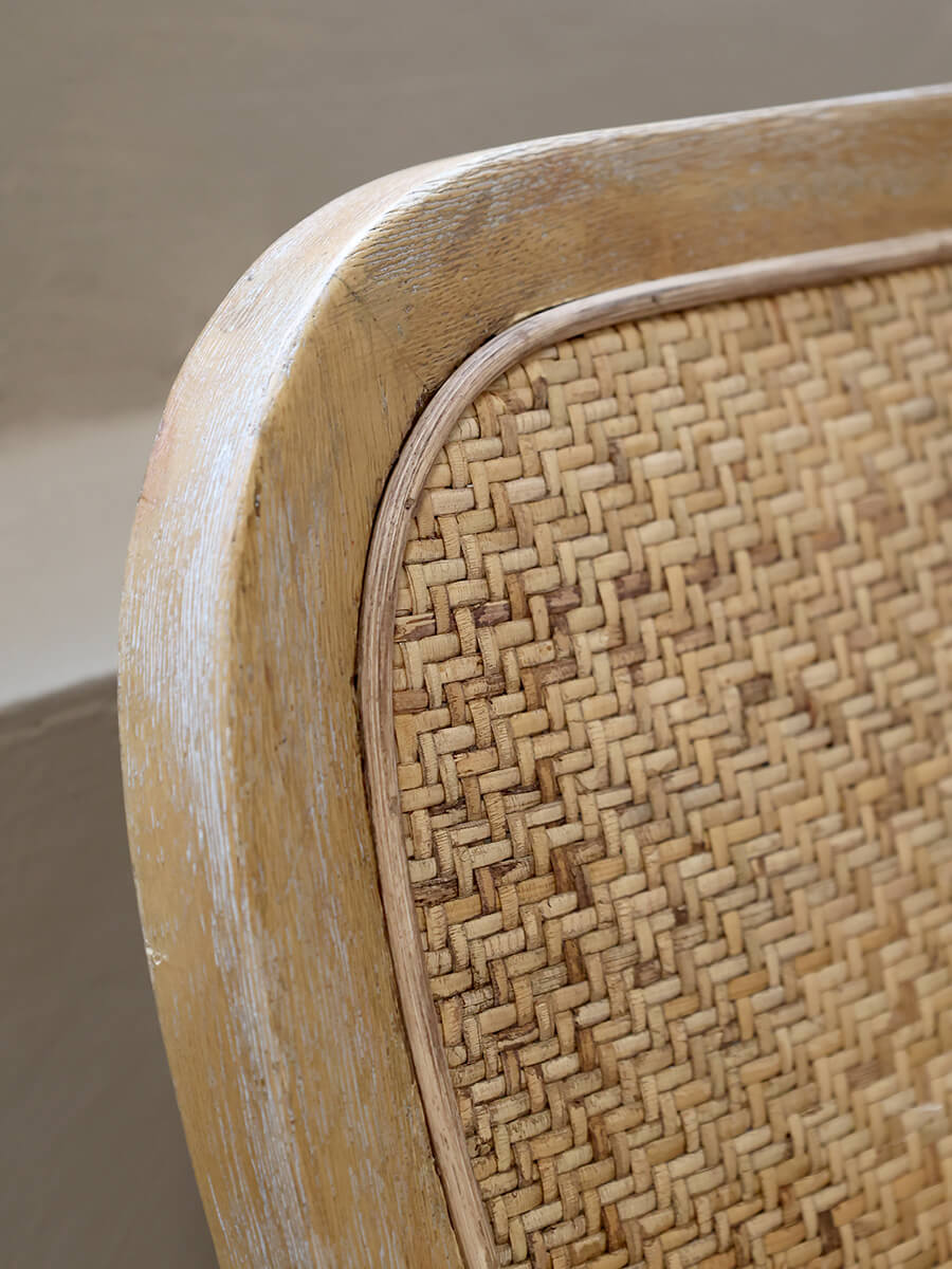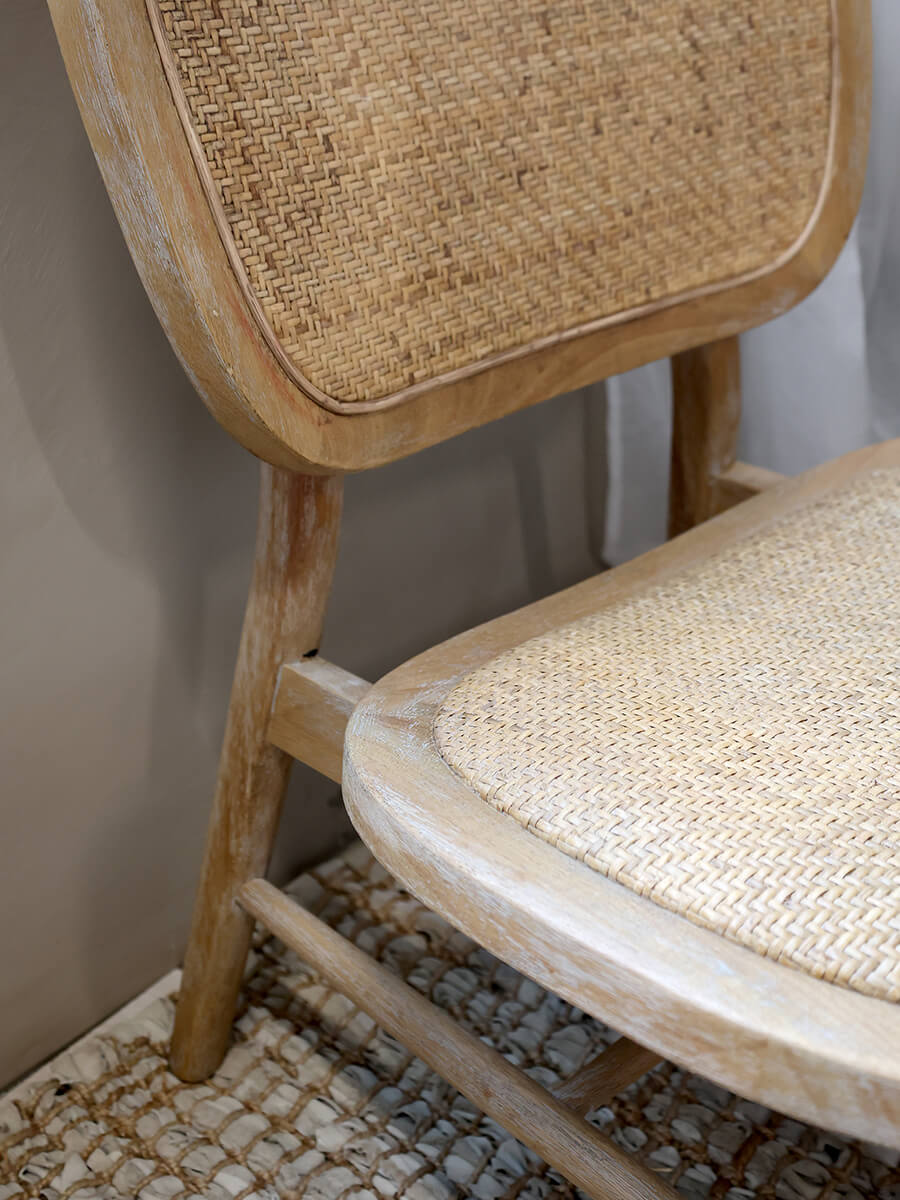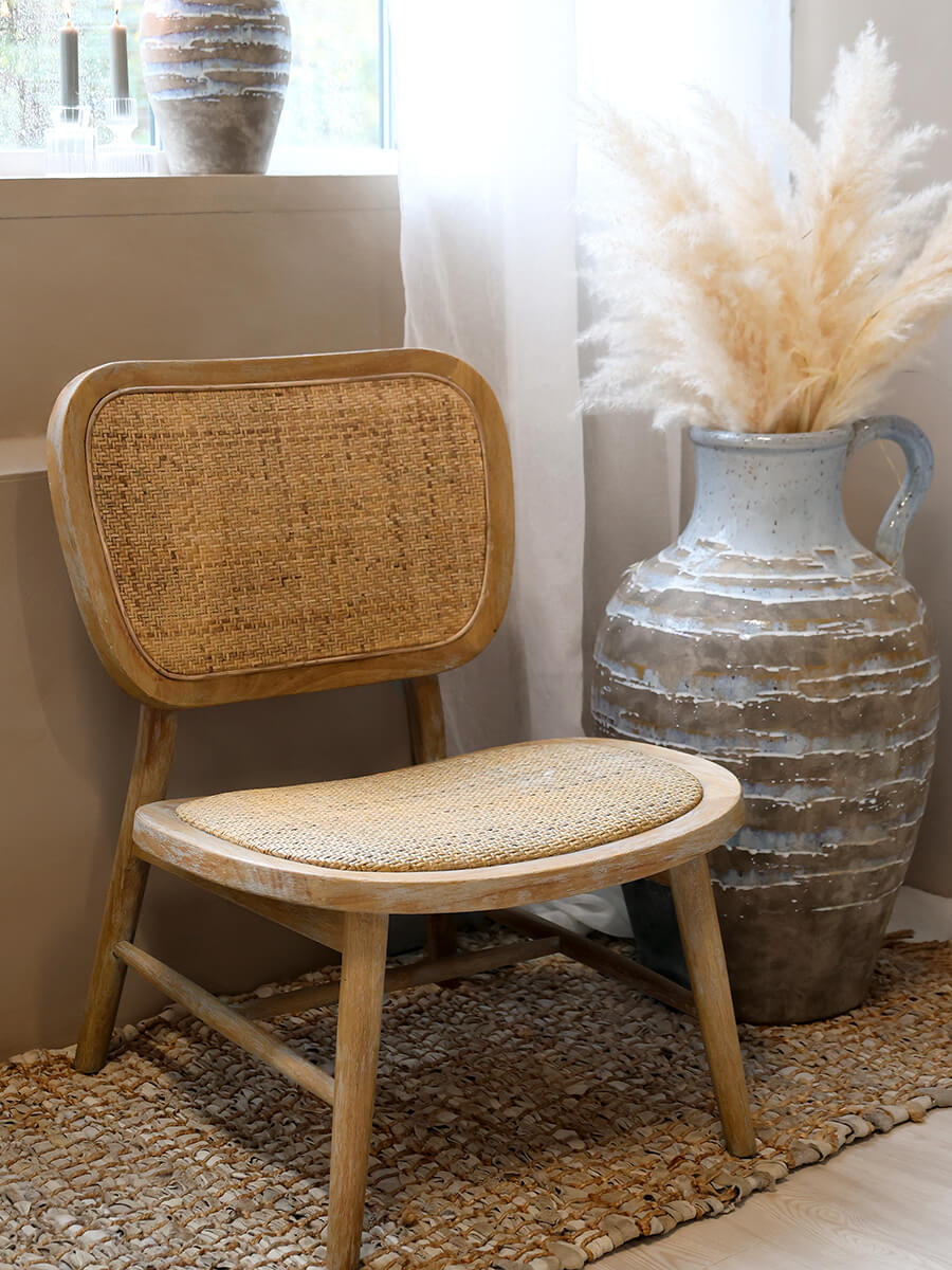 Loungesessel mit bequemer Sitzfläche und Rückenlehne aus Rattan. Der Rahmen aus Naturholz macht ihn zu einem Stück Natur.