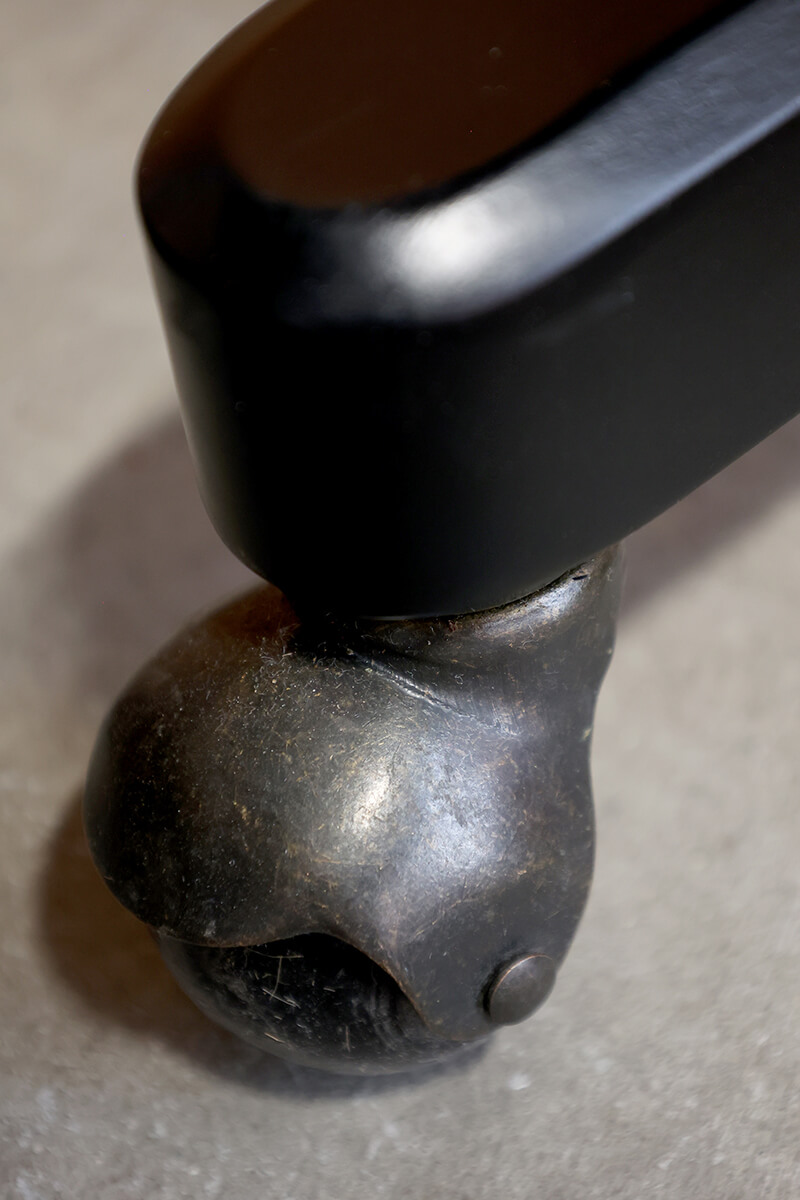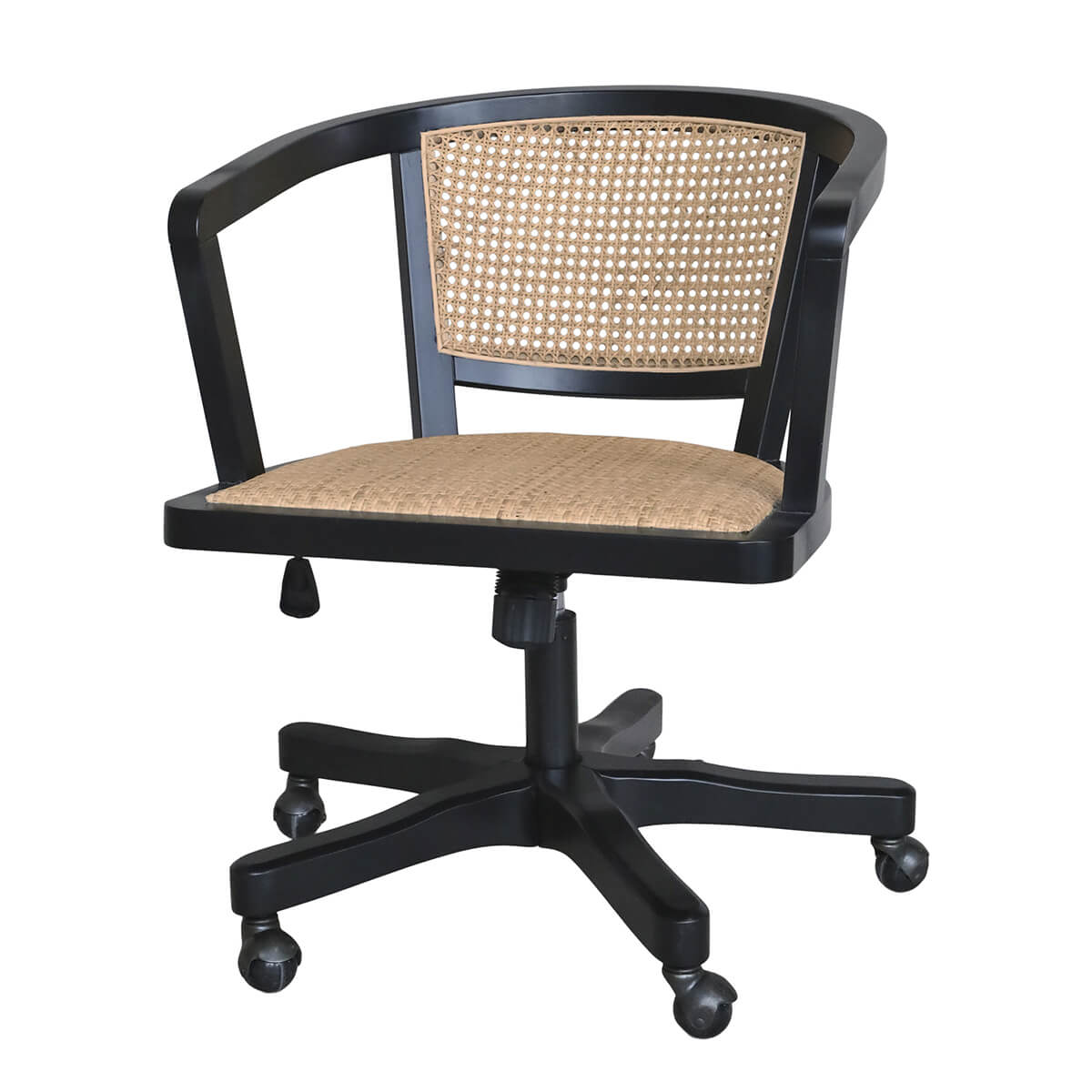 Schwarzer Bürostuhl mit Rattaneinsatz