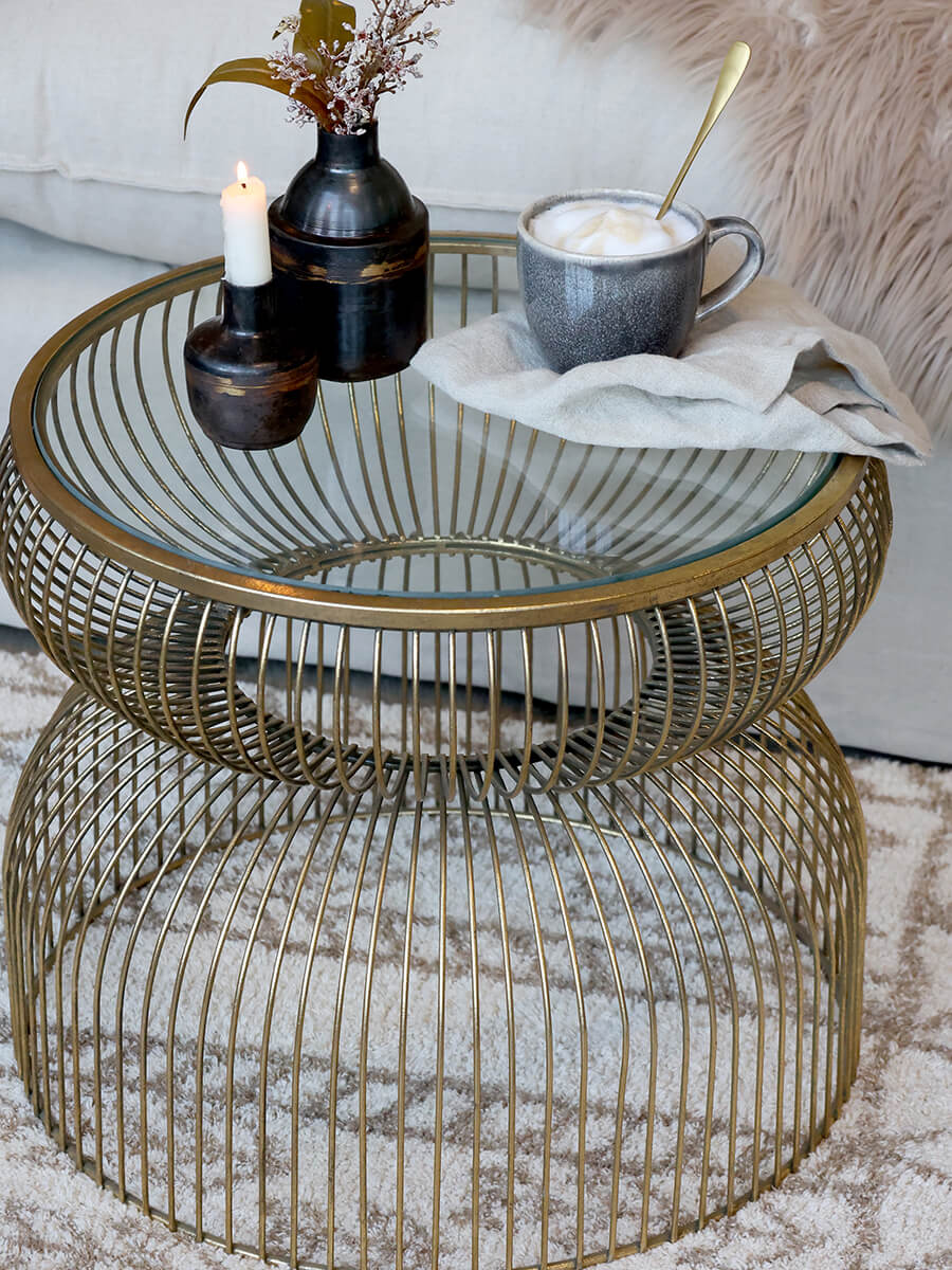 Bijzettafel met glazen blad van Chic Antique is de perfecte bijzettafel, nachtkastje of salontafel. En dat laatste zal zeker het geval zijn als je hem combineert met de lagere versie van de tafel.