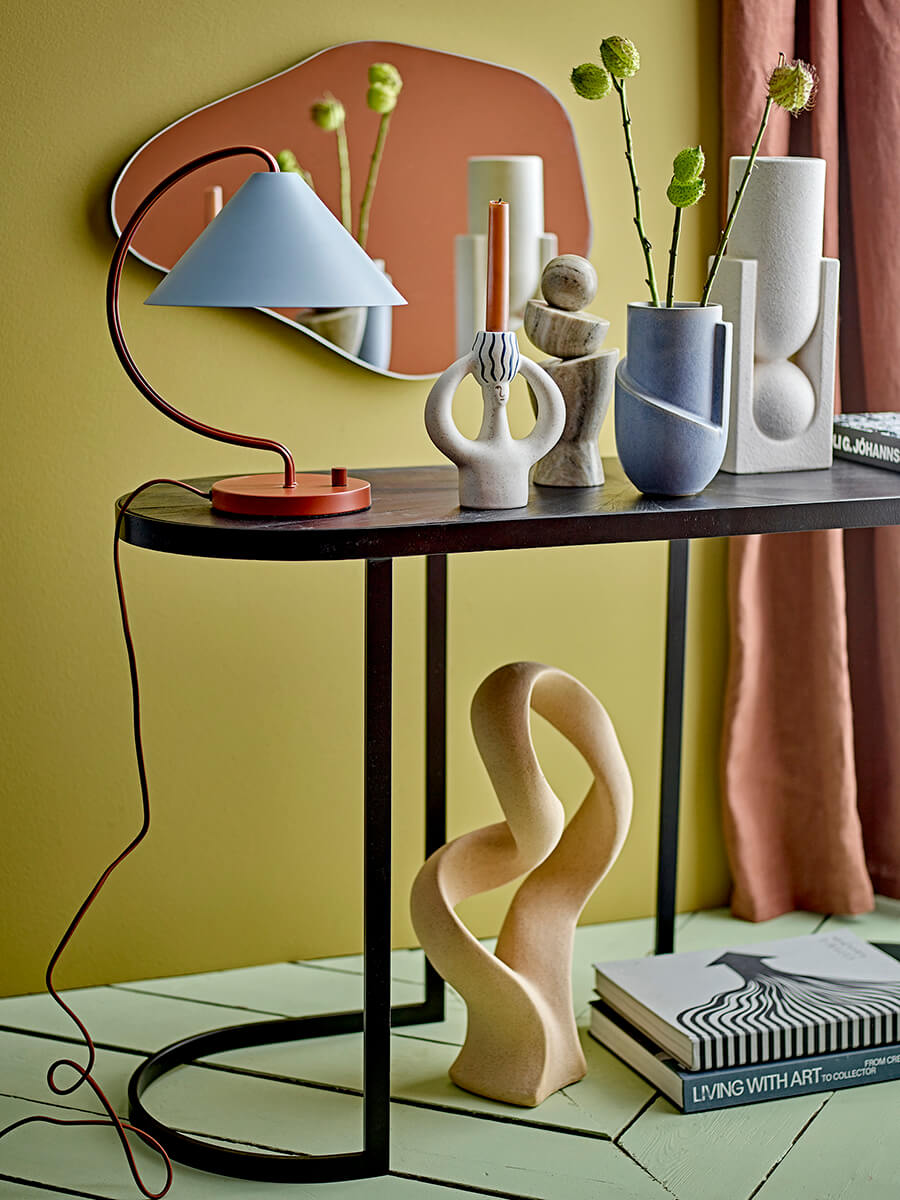 De Janya Tafellamp van Bloomingville is een moderne, grafische lamp. Plaats hem op een bijzettafel of nachtkastje om een kleurrijk element en gezellige verlichting toe te voegen aan elke kamer.