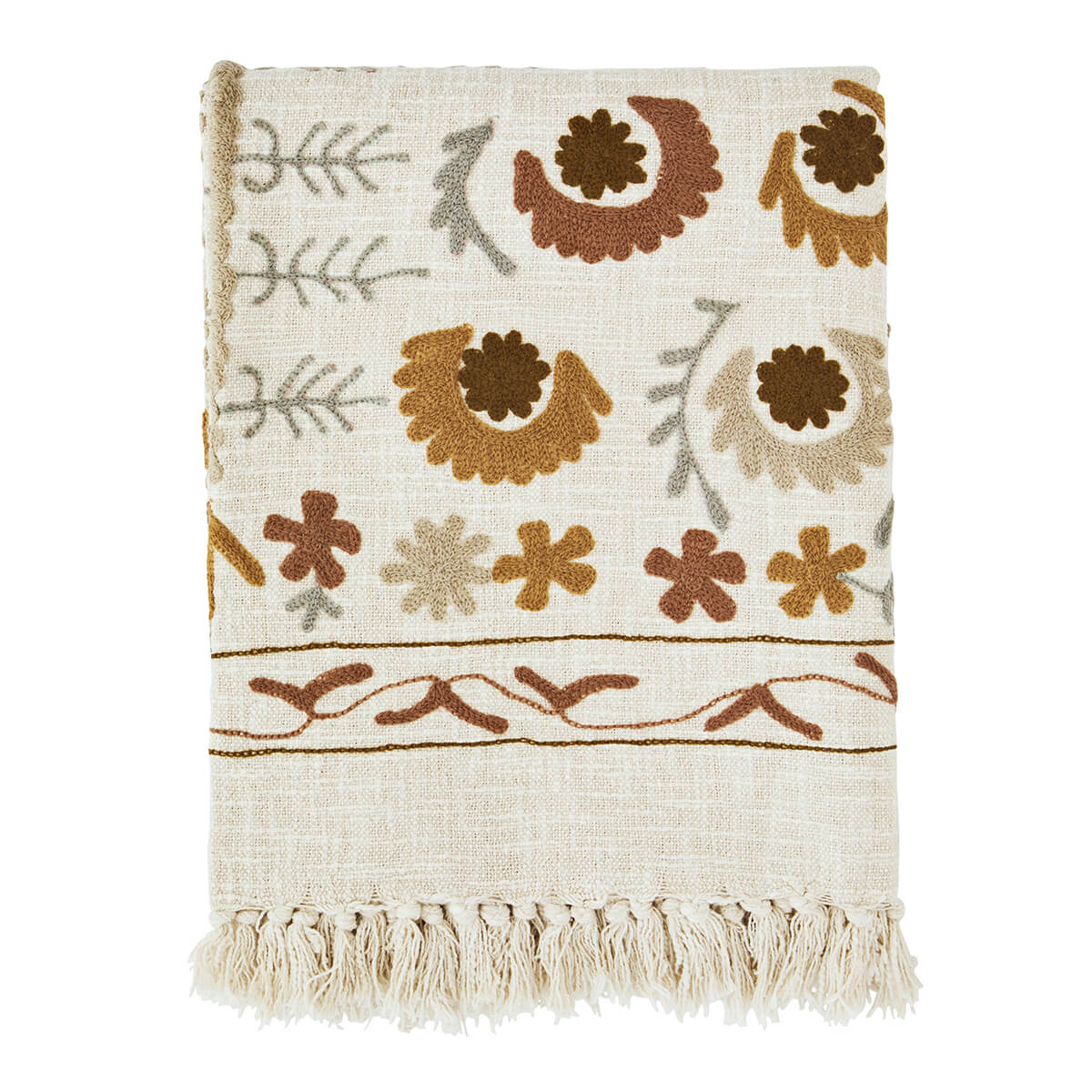 Suzani geborduurde katoenen throw - bruin