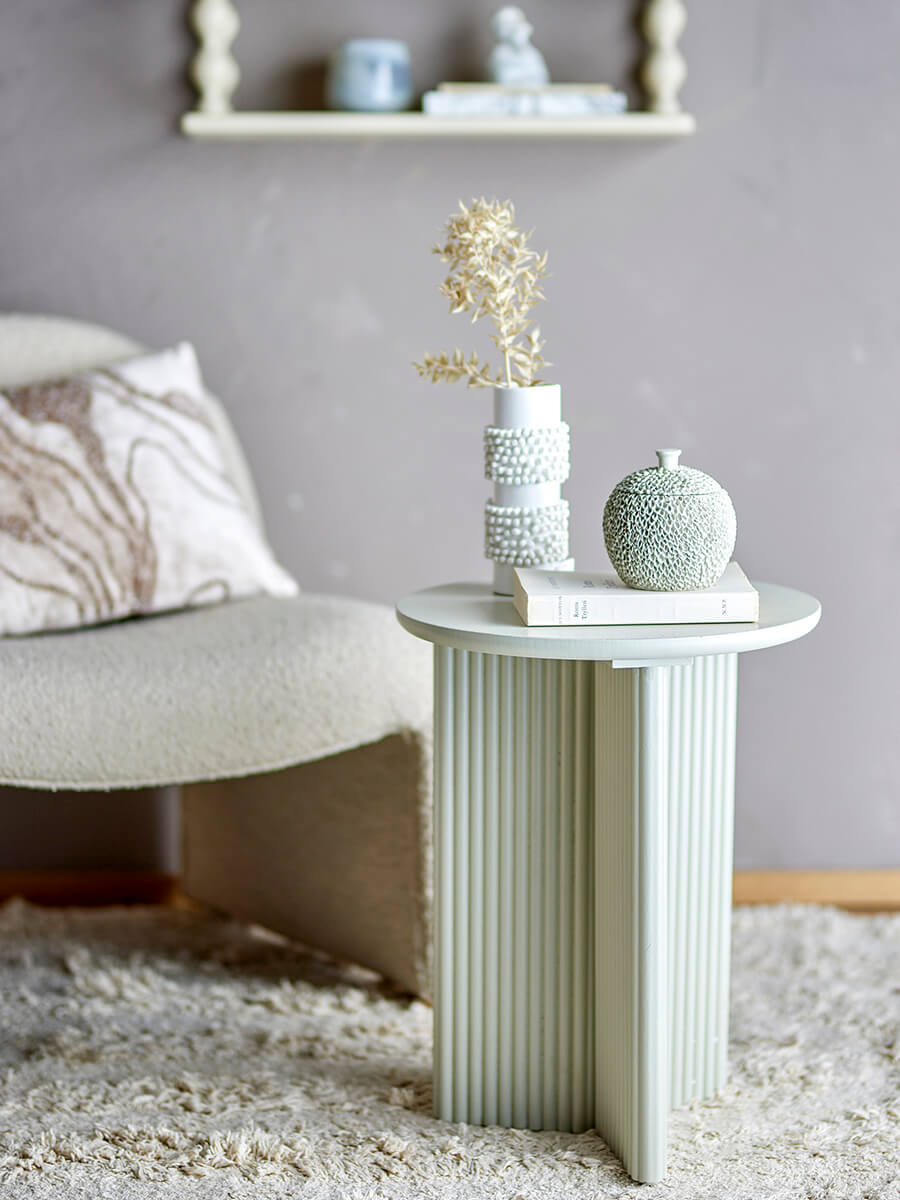 Biały stolik boczny Edith od Bloomingville to naprawdę wyjątkowy, nowoczesny mebel, który łączy skandynawski minimalistyczny styl z ciepłem naturalnych materiałów. Okrągły blat o średnicy 40 cm i unikalna rowkowana podstawa subtelnie odzwierciedlają czystą estetykę pożądaną w dzisiejszych wnętrzach. Biały stolik boczny Edith został wykonany z drewna sosnowego i płyty MDF, a jego lakierowana na biało powierzchnia nadaje mu ekskluzywny wygląd, emanując jednocześnie ponadczasową elegancją.