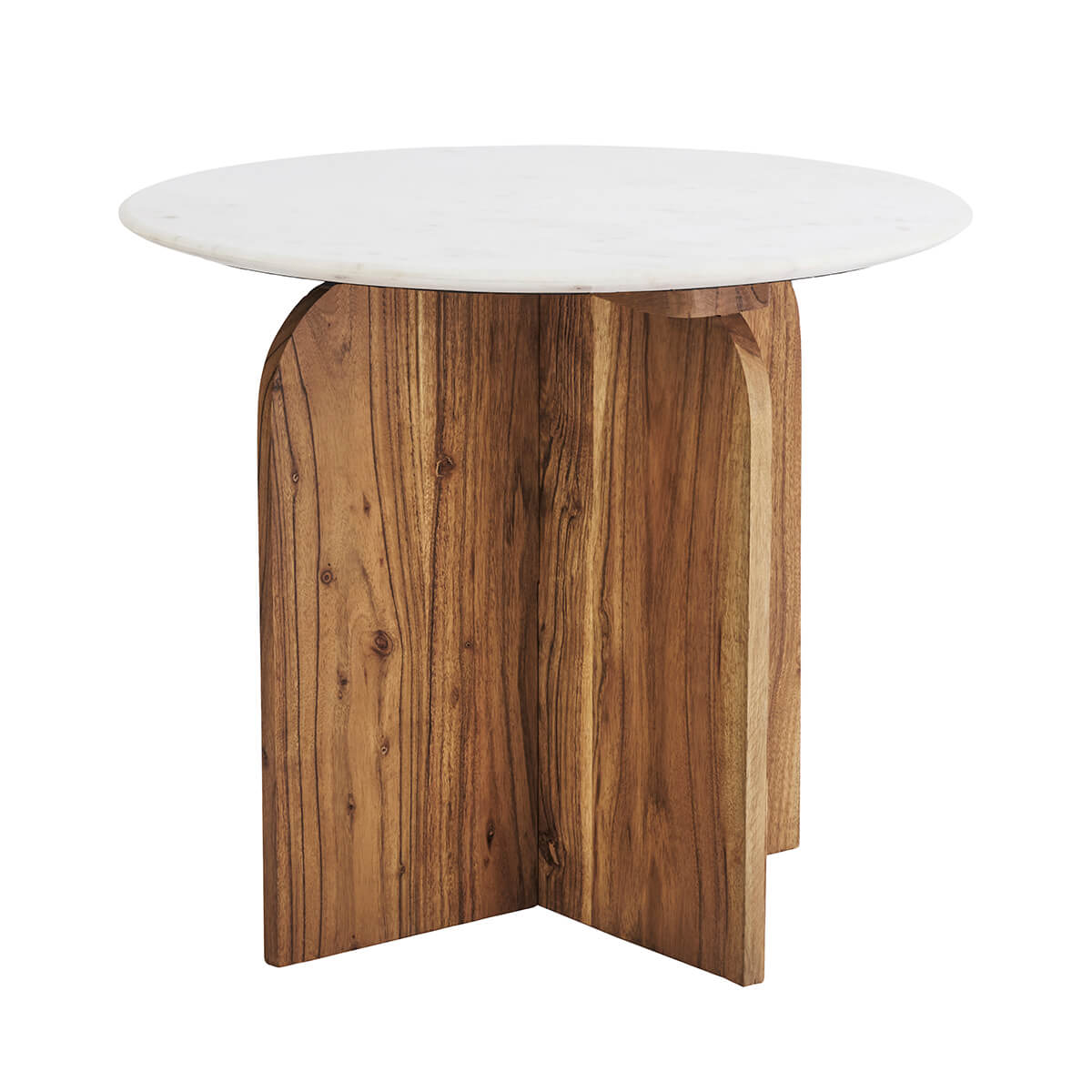Stolik kawowy Madam Stoltz Acacia z marmurowym blatem to eleganckie połączenie naturalnego drewna i eleganckiego marmuru, o wyjątkowym wyglądzie i najwyższej jakości.