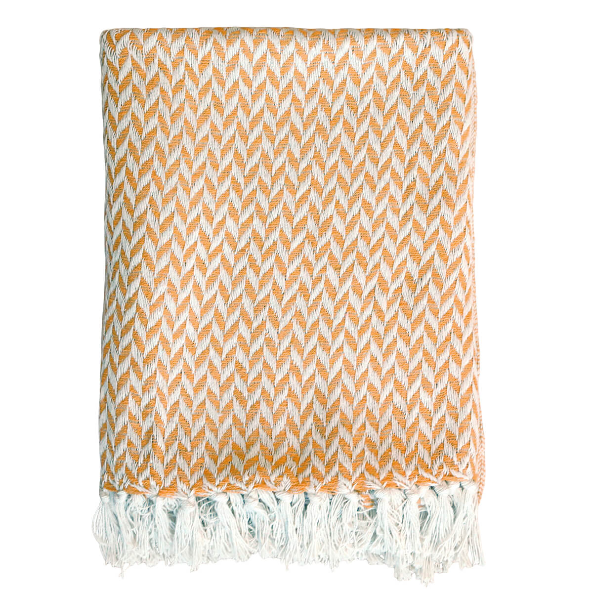 Miodowo-złoty bawełniany koc w pastelowym kolorze z delikatnym wzorem.