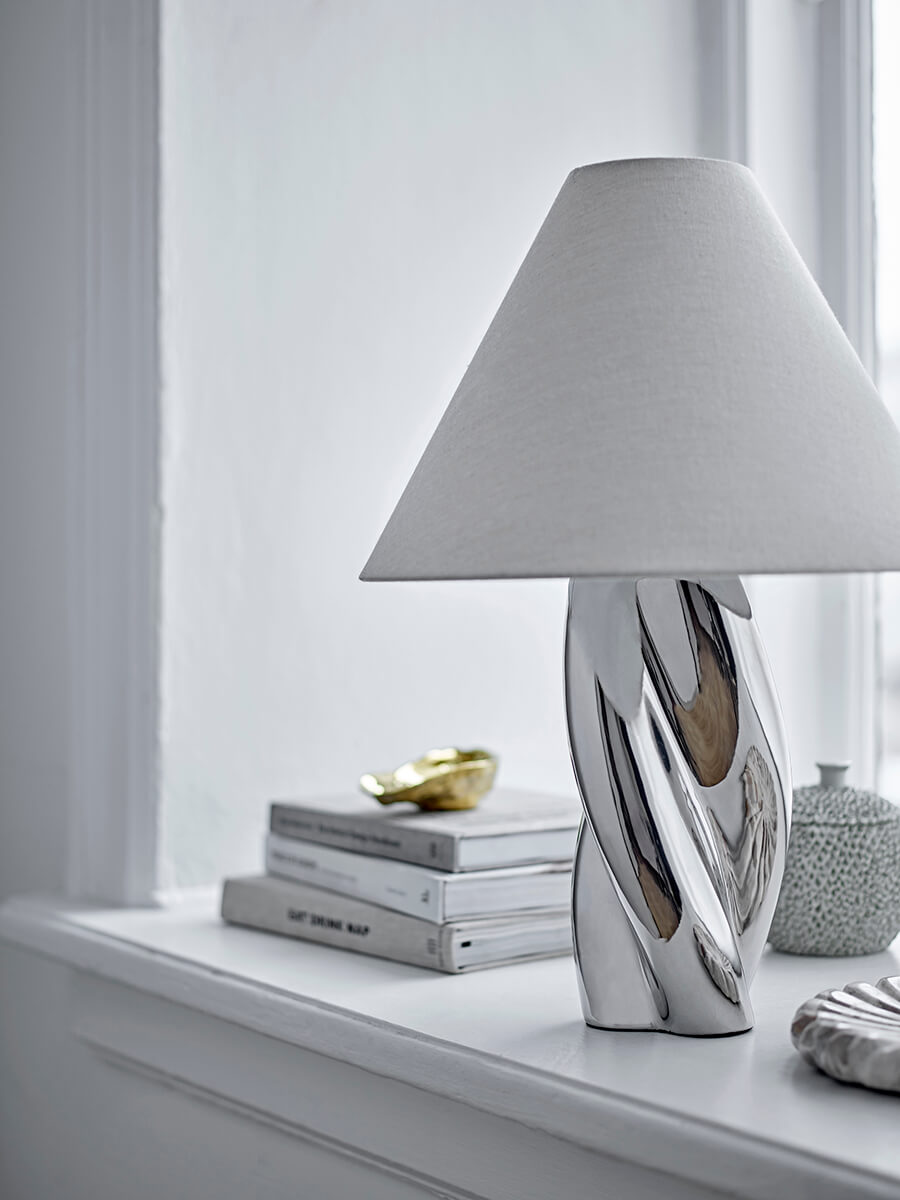 Srebrna lampa stołowa Silva od renomowanej marki Bloomingville to ponadczasowy element wykonany z wysokiej jakości ceramiki, a jego błyszcząca, rzeźbiarska podstawa w srebrnym kolorze natychmiast przyciąga uwagę. Nowoczesny design jest naprawdę wszechstronny dzięki klasycznemu kształtowi, dzięki czemu lampa ta jest idealnym wyborem do każdego stylowego domu. Błyszcząca powierzchnia wspaniale odbija światło, a elegancki klosz z jasnego płótna zapewnia miękkie, przyjemne oświetlenie.