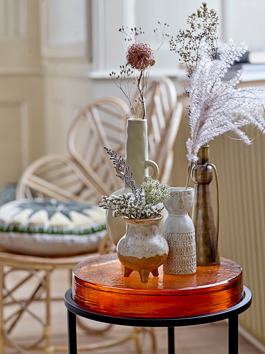 Vază albă din gresie cu o față. Lucrată manual, fiecare piesă este unică. Sub culoarea albă iese la iveală și nuanța sa originală, ceea ce o face un decor cu adevărat natural în casa dvs.