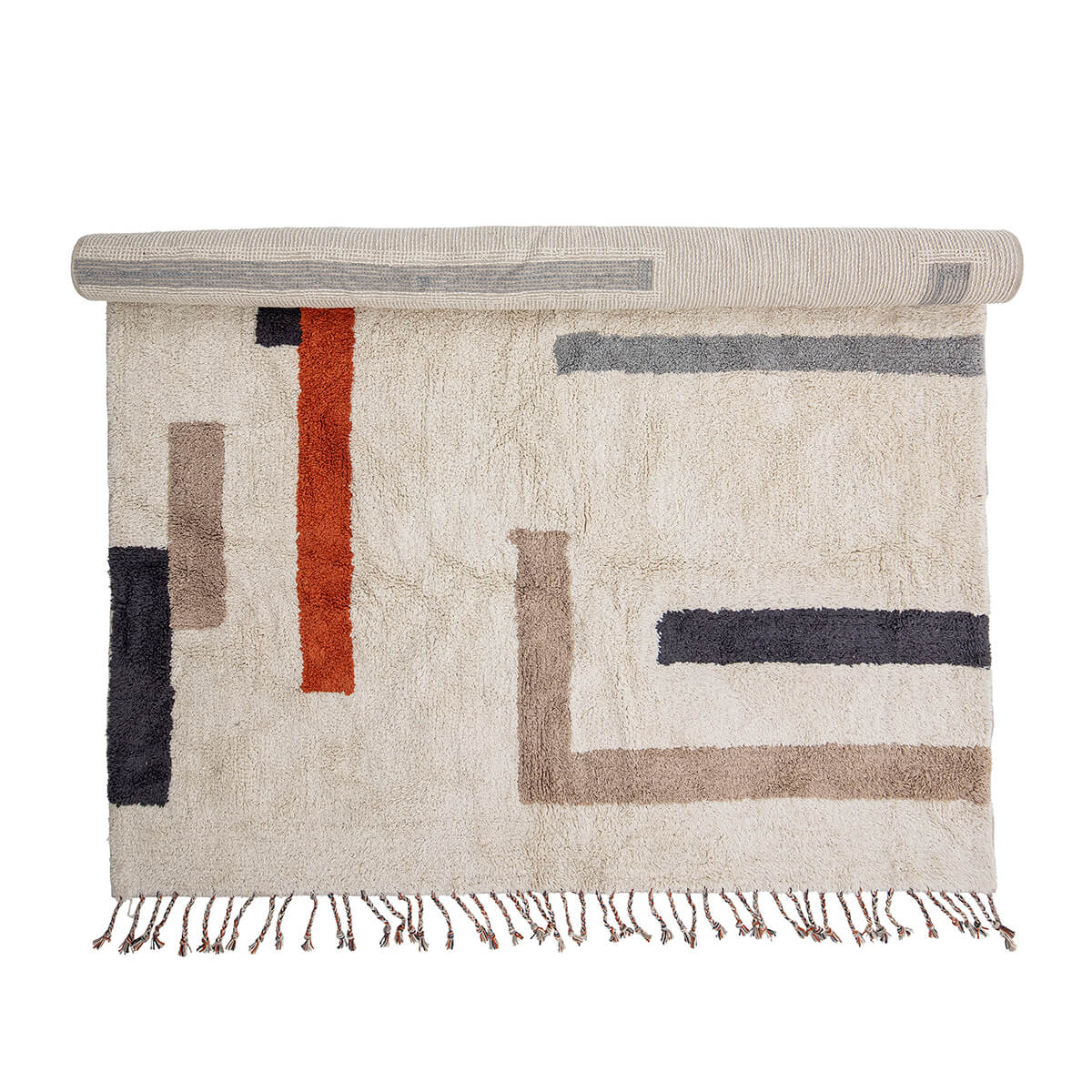 Mehka bombažna preproga, ki s svojimi veselimi barvami in vzorcem prijetno ogreje dom in ga polepša. Zaradi umirjenih barv je videti dobro v številnih notranjostih.