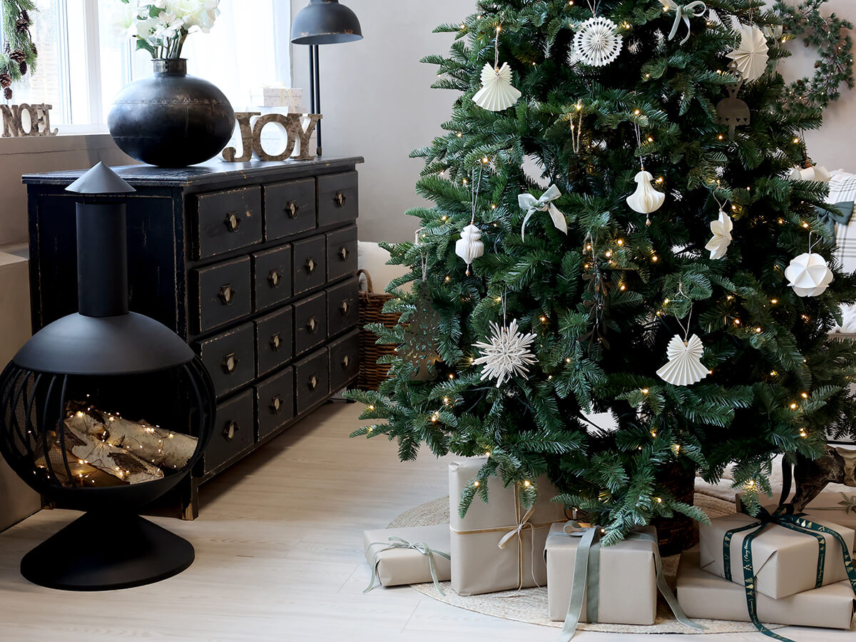 Ognjišče z odprto zasnovo in majhnim dimnikom za zunanjo uporabo. Če v notranjost postavite pravljične lučke, je lahko tudi prijeten dodatek v notranjosti.