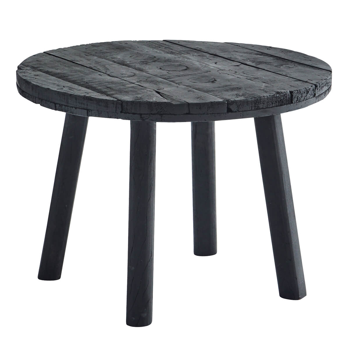 Kavna mizica Handicraft v črni barvi iz recikliranega lesa bo s svojim edinstvenim videzom poseben dragulj v vašem vintage, industrijskem ali skandinavskem domu.